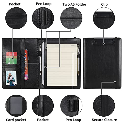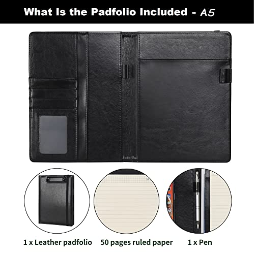 Wonderpool A5 Appunti in PU pelle Partfolio Notepad Porta moduli - Intervista Planner Meeting Scrittura Padfolio File Porta documenti per ufficio Viaggi Scuola Hotel Ospedale (A5,Nero)