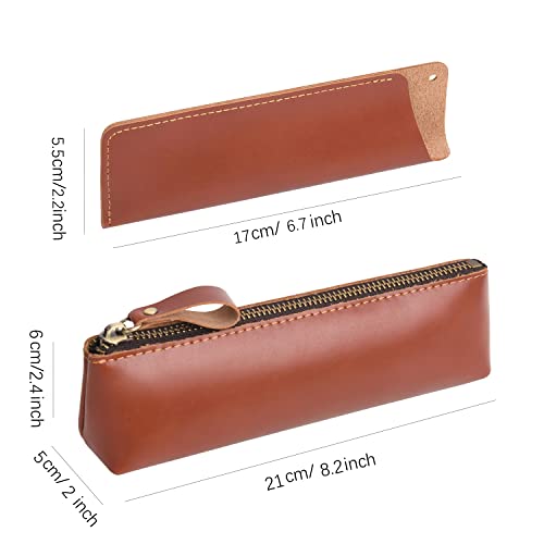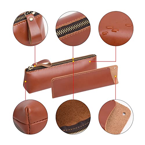 Wonderpool 1 astuccio e 1 Portapenne in Pelle - sacchetti di cancelleria per pennarelli portatili compatti chiusura capiente per organizer da viaggio per ufficio scolastico (Rossastro)