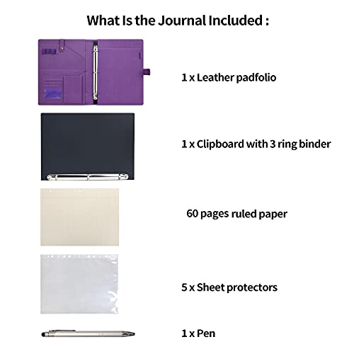 RILEVATORE A 3 ANELLI RIMOVIBILE - La custodia per padfolio rimovibile e ricaricabile protegge i tuoi oggetti, file e documenti all'interno, puoi rimuovere il raccoglitore quando non ne hai bisogno o riempire il tuo importante libro, carta e diario. che facilitano il tuo uso quotidiano e rendono più efficiente il tuo lavoro, lavoro, viaggi o studio.