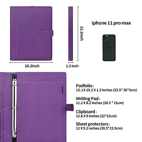 Wonderpool Cartella per Documenti in Pelle A4, Raccoglitore ad Anelli Rimovibile con Portablocchi e multi tasca Organizzatore per Ufficio Conferenza Riunione e Lavoro (Viola)