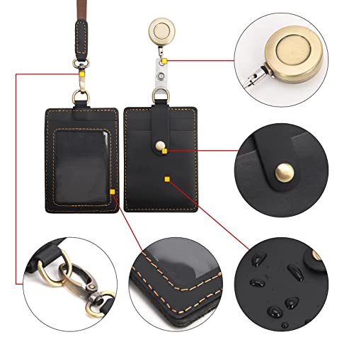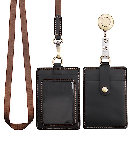 Wonderpool Porta Badge Pelle Badge Porta Carte Tasca con Cordino da Collo Staccabile e Portachiavi Retrattile filo acciaio per Ufficio Scuola Ospedale ID Patente di Guida Chiavi (Nero)