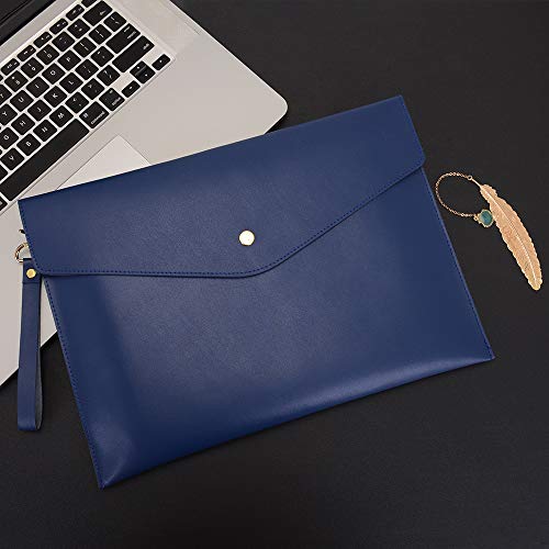 Wonderpool Portadocumenti per buste A4 -Portafoglio multifunzione in vera pelle leggera per organizer per documenti cartacei Custodia per tablet PC (Blu)
