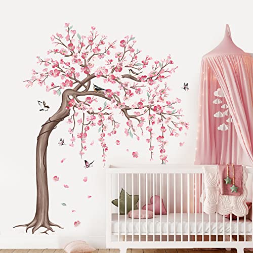 Wondever Adesivi Murali Albero Grande Fiori di Ciliegio Sticker da Muro Fiore Rosa Uccelli Adesivi da Parete per Camera da Letto Soggiorno Camerette Bambini (H:162cm)