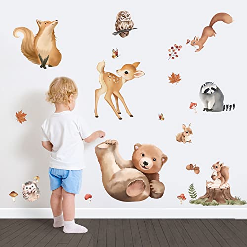 Wondever Adesivi Murali Animali del Bosco Sticker da Muro Acquerello Animali Orso Cervo Adesivi da Parete per Camerette Bambini Asilo Nido