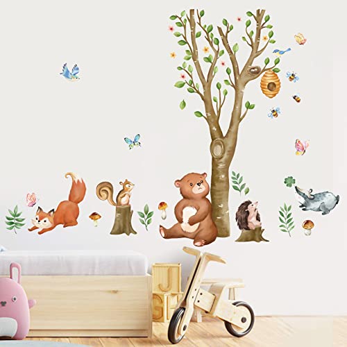 Wondever Adesivi Murali Animali Foresta Albero Sticker da Muro Orso Volpe Riccio Adesivi da Parete per Camerette Bambini Camera da Letto