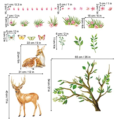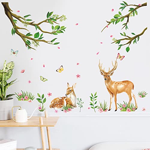 Wondever Adesivi Murali Animali Foresta Cervi Sticker da Muro Ramo Fiorito Adesivi da Parete per Camera da Letto Soggiorno Asilo Nido