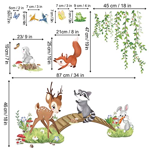Wondever Adesivi Murali Animali Foresta Sticker da Muro Ponte Cervo Procione Volpe Adesivi da Parete per Camerette Bambini Camera da Letto