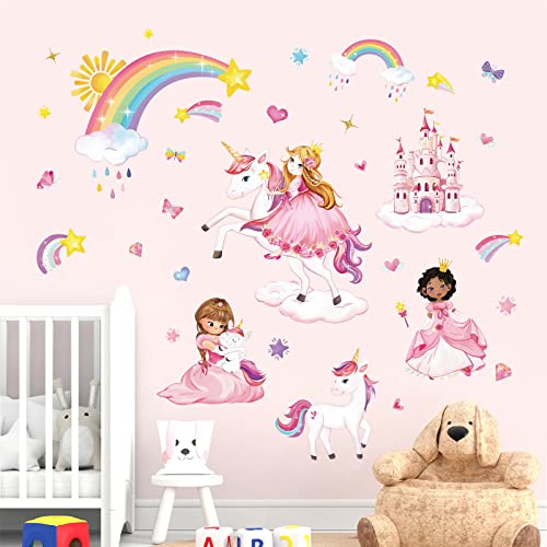 Wondever Adesivi Murali Unicorno Principessa Sticker da Muro Castello Arcobaleno Adesivi da Parete per Camere Ragazze Camerette Bambini