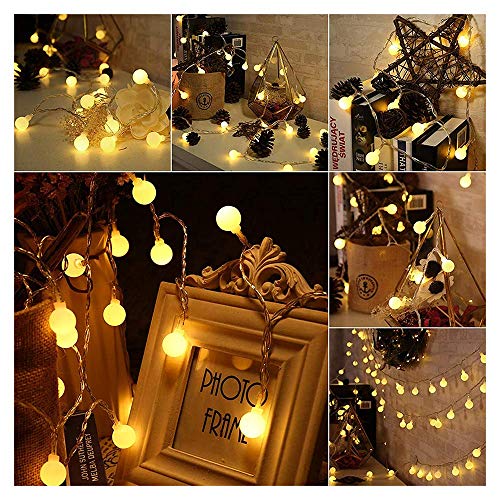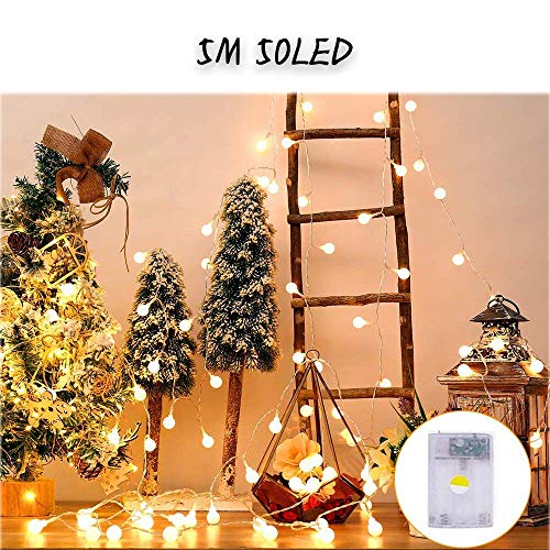 Wondsea - Luci a sfera a forma di globo da 4.8 m, 50 LED, con custodia per batteria, 2 modalità, decorazione per interni ed esterni, per feste, matrimoni, albero di Natale, giardino, bianco caldo