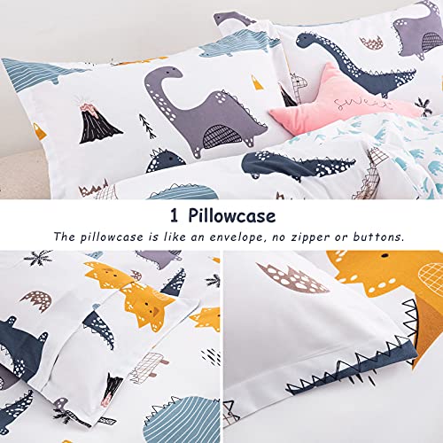 WONGS BEDDING Set biancheria da letto per bambini dinosauro bianco, 1 federa e cerniera, 100% morbida microfibra (135 x 200 cm)