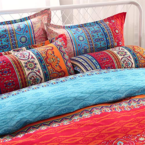 WONGS BEDDING Completo letto matrimoniale in stile bohemien per adulti, copripiumino bohémien marocchino con 2 federe, copripiumino Mandala 200 cm * 200 cm