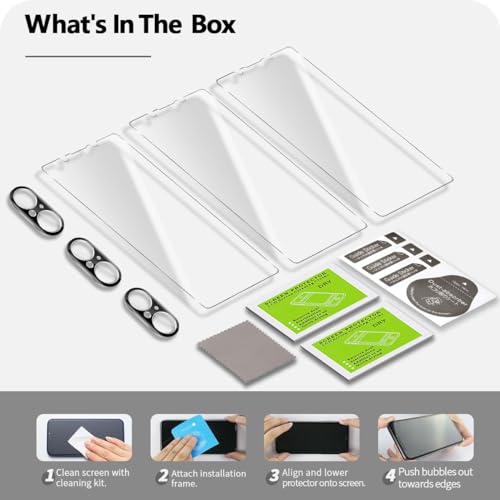 【9H Durezza】: La durata 9H vetro temperato garantisce la massima protezione del telefono, antigraffio e anti-impronta. È in grado di proteggere efficacemente l'intero obiettivo da graffi e altri incidenti e offre la migliore protezione al telefono.