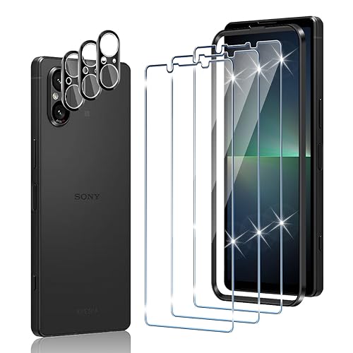 Wonsoso Compatibile con Sony Xperia 5 V Vetro Temperato, 3 Pezzi 9H Pellicola Protettiva e 3 Pellicola Fotocamera Strumenti di Installazione, Senza Bolle, Anti Graffio Schermo Pellicola