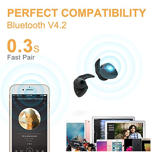 Wonstart Bluetooth Headphones V4.2 Noise Cancelling True Wireless Auricolari Mini Bluetooth Earphones w / Built-in Mic Mini Caricabatterie per Hiking Biking Travel Work IOS / Android