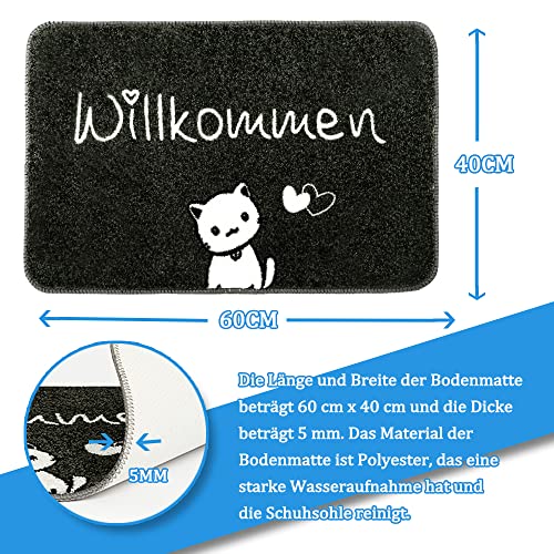 Il concetto di design del tappetino: con incisione "Benvenuto" sul tappetino significa benvenuto a clienti, parenti o amici in casa o in negozio. Sul tappetino è cucito un simpatico gatto che rappresenta il gatto portafortuna e l'amore.