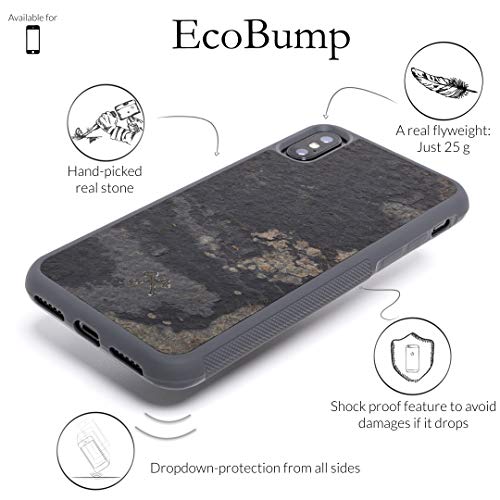 Woodcessories - Design Custodia, Cover Compatibile con iPhone Xr in vera ardesia - EcoBump Stone (Grigio Granite)