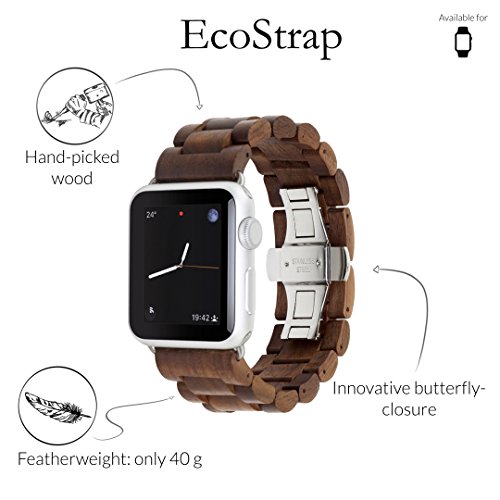 Woodcessories - Premio Cinturino, Strap Compatibile con Apple Watch Series 1-5 di Legno Naturale - EcoStrap Apple Watch Band (42mm / 44mm, Noce/Argento)