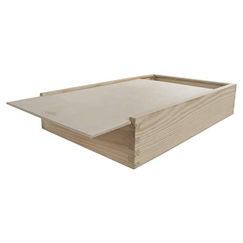WooDeeDoo - Scatola decorativa con coperchio scorrevole in legno, 32 x 21 x 6 cm, per conservare i ricordi dei ricordi della foto, in legno non verniciato e non trattato per decoupage