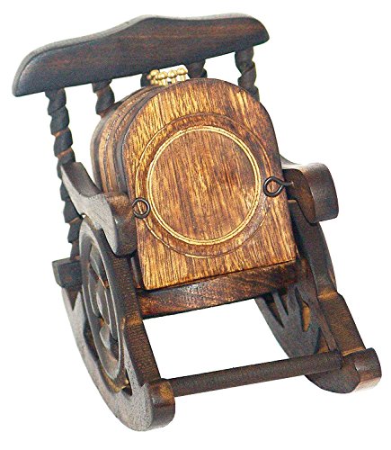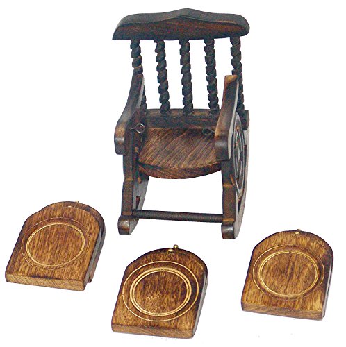 Wooden Antique Hand Crafted Coasters Decorated in Rocking Chair Stand Set of 6 Pcs by Super India