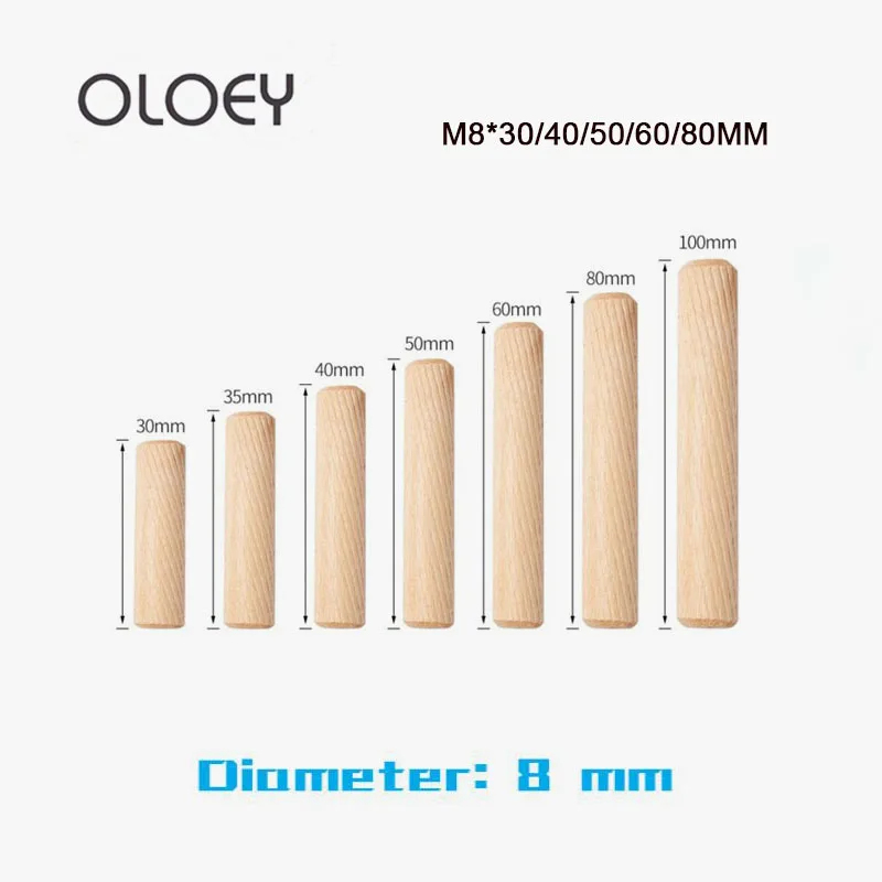 Wooden Dowel M8 Cabinet Drawer Round Fluted Wood Craft Dowel Pins Rods Set Furniture Fitting M8 Length:30mm-80mm Wooden Dowel M8