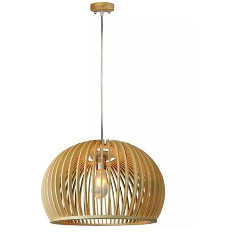 Wooden pendant light with chrome decorative cap + canopy + lampshade big round d440*h280mm