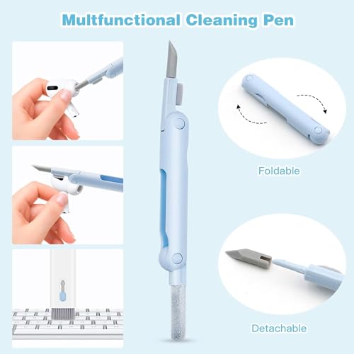WOODFIB Spazzola per la pulizia della tastiera, 7 in 1, multifunzione per cuffie, set di pulizia multifunzione [blu]