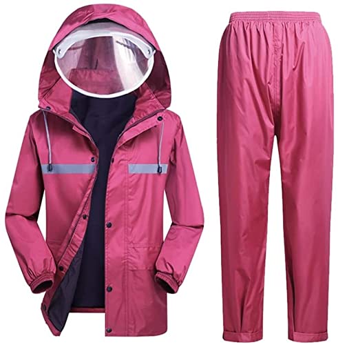 WOODJU Tuta antipioggia per uomo donna antipioggia giacca pantaloni set impermeabile alta visibilità antivento con cappuccio impermeabile lavoro moto golf pesca (M)