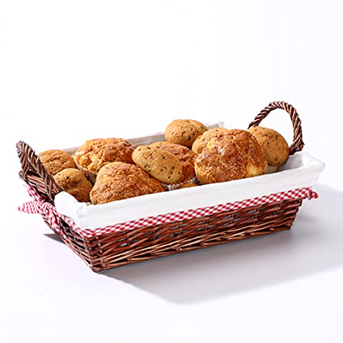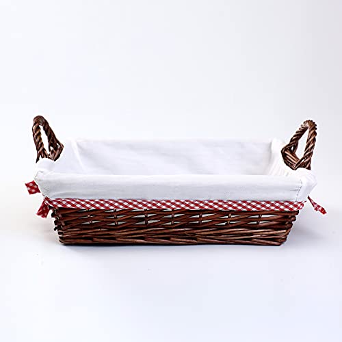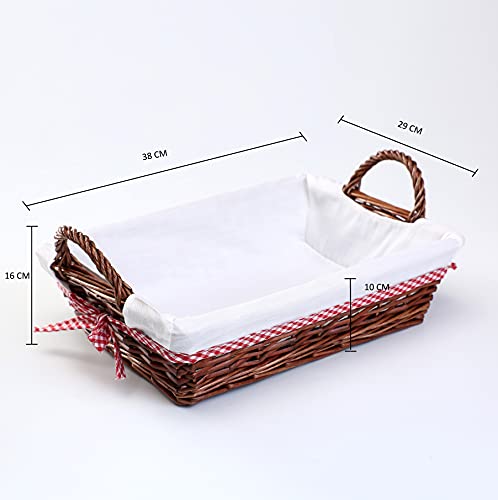 Woodluv - Cestino Rettangolare per Il Pane, in Vimini, con Fodera Bianca, 27 x 38 cm, Colore Marrone