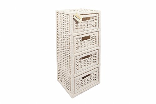 Woodluv, Mobiletto con 4 cassetti in Vimini per Bagno, Bianco (White)
