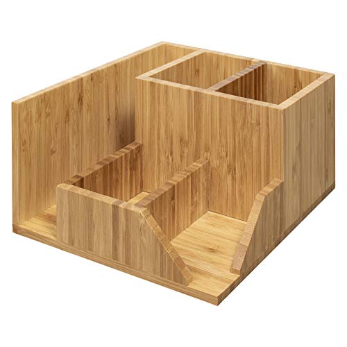 Design: robusto ma leggero organizer da scrivania in legno di bambù che è costruito per durare e ogni slot dell'unità lo rende comodo da posizionare o togliere gli accessori per ufficio.