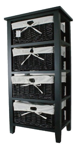 Struttura in legno nero con cassetti di vimini