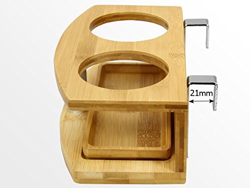 Woodquail Clip on Portabicchieri Mensola da Appendere, Piccolo Comodino, Realizzato in Bambù Naturale (Clips 21mm)