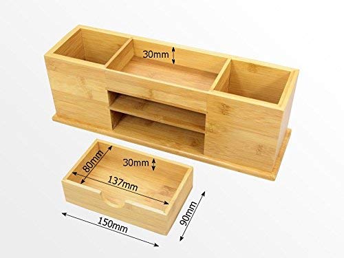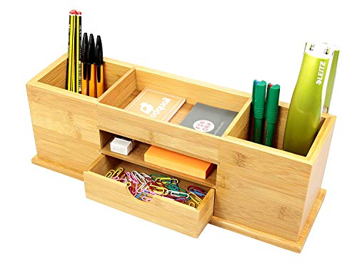 Woodquail Organizer da Scrivania con Cassetto, Organizer per Cancelleria 5 Scomparti, Realizzato in Bambù Naturale