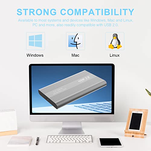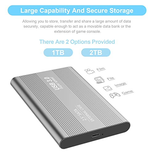 Wooge Hard Disk Esterno 1tb Portatile USB3.0 SATA HDD Storage per PC, Mac, Desktop, Laptop, MacBook, Chromebook (1tb, Argento)