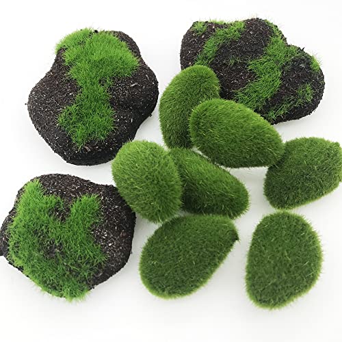 Ampiamente usato: le bellissime rocce di muschio sembrano vere e carine, riempiono la pietra ricoperta di muschio in una ciotola, vaso, cilindro di vetro. La pietra artificiale è adatta per luoghi a tema boschivo, ghirlande, case delle bambole, giardini delle fate e terrari.