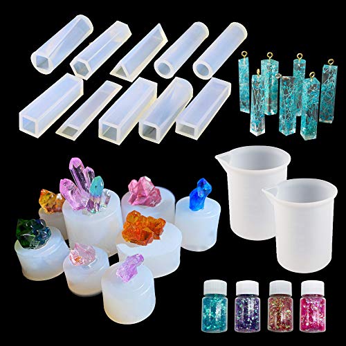 N|A Woohome 24 Pz Stampi per Resina, Stampi in Resina Siliconica Stampi a Grappolo di Cristallo, Set di Polvere Glitter per Decorazione Domestica Artigianato (Style 1)