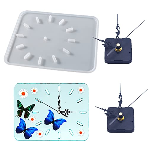 Woohome Stampi in Silicone Orologio, Stampo Silicone Resina Numeri Romani in Forma Rettangolo, 2 Set Movimento Dell'orologio con Lancette per Decorazioni Casa di Orologi Fai Da Te