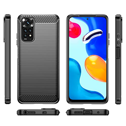 Wookfiss Cover per Xiaomi Redmi Note 11/ Note 11S Silicone Custodia,TPU Design in Fibra di Carbonio Originale Custodia Nero Cover,Antiurto Antigraffi Sottile