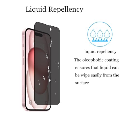 Wookfiss Privacy Vetro Temperato per iPhone 15, 2 Pezzi Pellicola Protettiva e 2 Pezzi Pellicola Fotocamera, Durezza 9H, Anti Graffio Film compatibile con iPhone15
