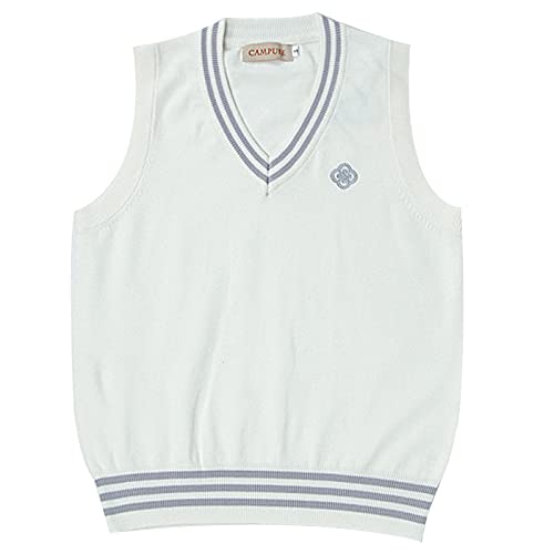 WOOKIT Donna Uomo Maglione Gilet Senza Maniche con Scollo a V, Ragazze Ragazzi Classico/Scolastico/Casual/Vintage/Maglione Lavorato per Primavera Autunno Inverno-Beige Bianco con Grigio Chiaro-XS