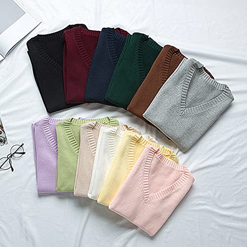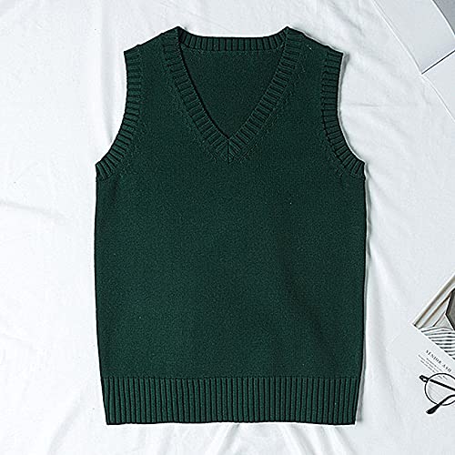 WOOKIT Gilet Maglione Senza Maniche da Donna Uomo Ragazzo Ragazza, Gilet Unisex in Maglia di Cotone con Scollo a V, Maglia Vintage 12 Colori per Autunno Primavera Inverno-Verde Scuro-L