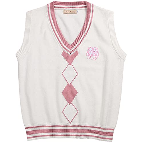 WOOKIT Gilet Uomo Donna Senza Maniche con Scollo a V Maglione con Ricamo a Forma di Panda Carino, Maglia in Cotone per Ragazzi Ragazze della Scuola, Maglioni in Maglia Scozzese Argyle-Rosa-M
