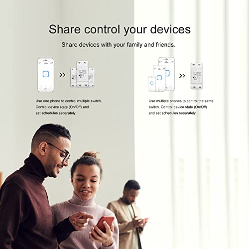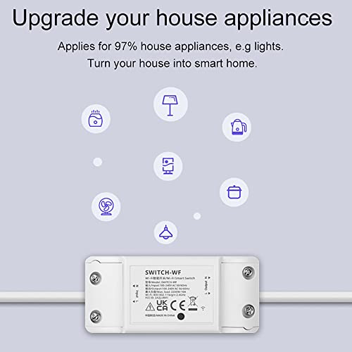 【Controllo remoto】 Questo Woolley Interruttore Intelligente modulo è il supporto aggiunto all'app "eWelink", quindi è possibile tramite l'app "eWelink" per conoscere lo stato di alimentazione e il controllo del telecomando ovunque e in qualsiasi momento. Nota: 1. Lo switch Smart WiFi Woolley può essere utilizzato solo per la rete a 2,4 GHz (la rete a 5 GHz non è supportata). 2. Supporta solo l'app "eWelink", l'altra app non è supportata.