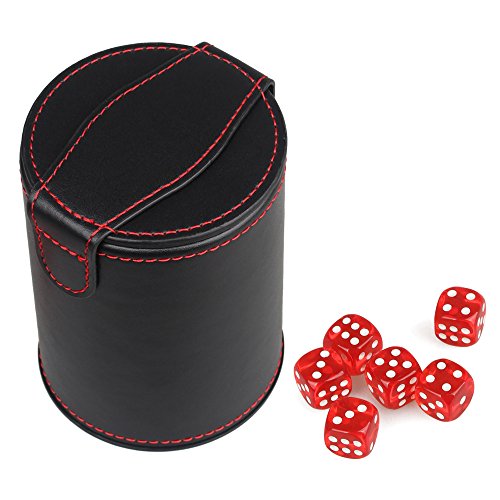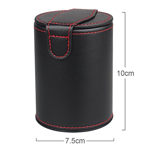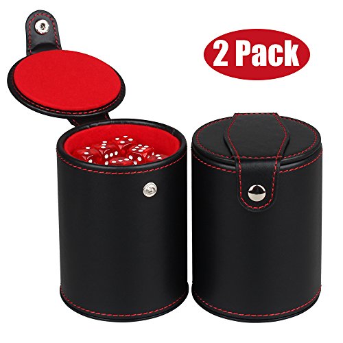 WOOWA Leather Dice Cup Shaker with Hidden Dice Storage Box for Most Dice Game, 6 Translucent Red Dices Included (2 Pack)