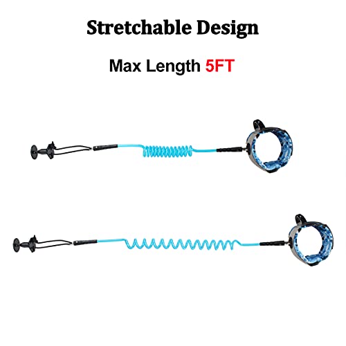 WOOWAVE Bodyboard Leash con spina, cavo Premium Coiled da 7 mm, per bicipiti, bodyboard con cinturino SBR di alta qualità, 5 ft (blu)