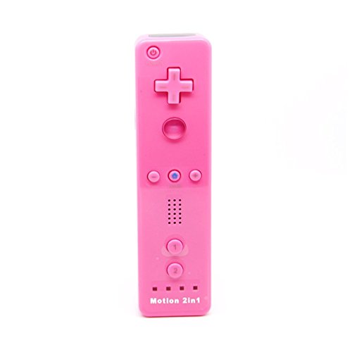 Woowo - Controller Wiimote per Nintendo Wii dotato di sensore MotionPlus a distanza e controller per gioco nunchaku, astuccio in silicone rose