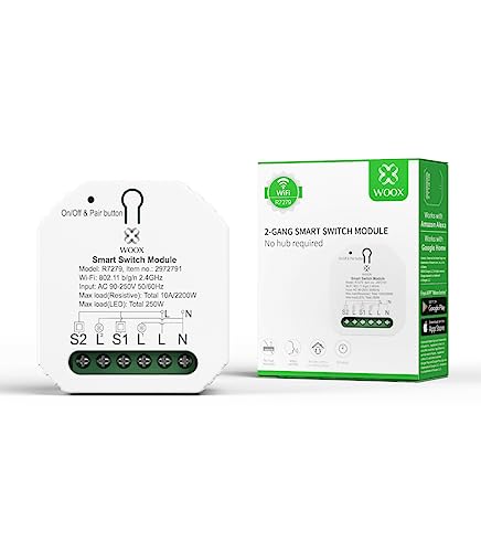 Woox Modulo interruttore intelligente a 2 canali - WiFi 2.4GHz Smart Switch 2-gang