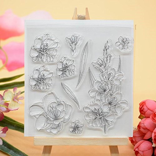 WooYangFun Joyful Home, timbro trasparente in gomma con foglie di fiori per decorare biglietti e album di ritagli.