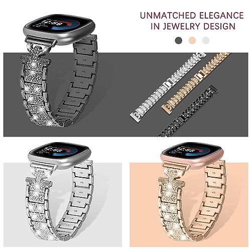 WoPail Cinturino Compatibile per Fitbit Versa 4/Fitbit Versa 3/Fitbit Sense 2/Fitbit Sense, Cinturini Donna Acciaio Inossidabile Bling Strass Bracciale di Ricambio Cinturino Nero