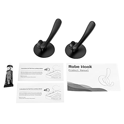 Wopeite Ganci per asciugamano e accappatoio Ganci per porta della cucina del bagno senza trapano in acciaio inossidabile, confezione da 2 Nero